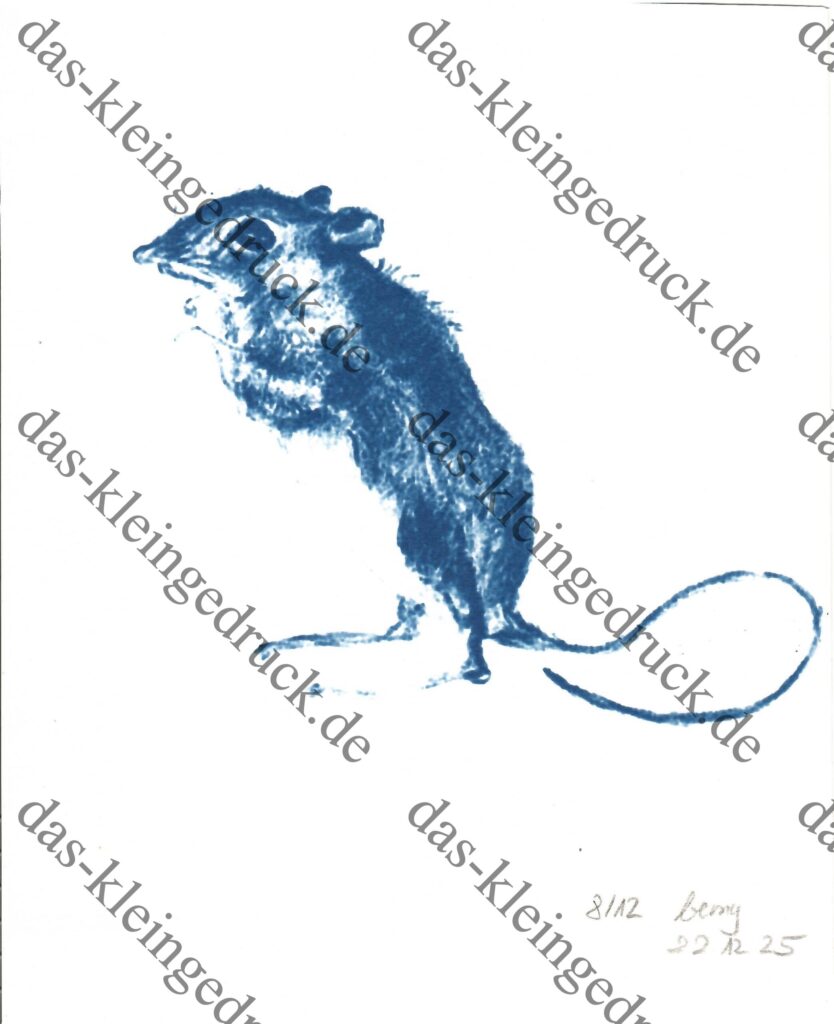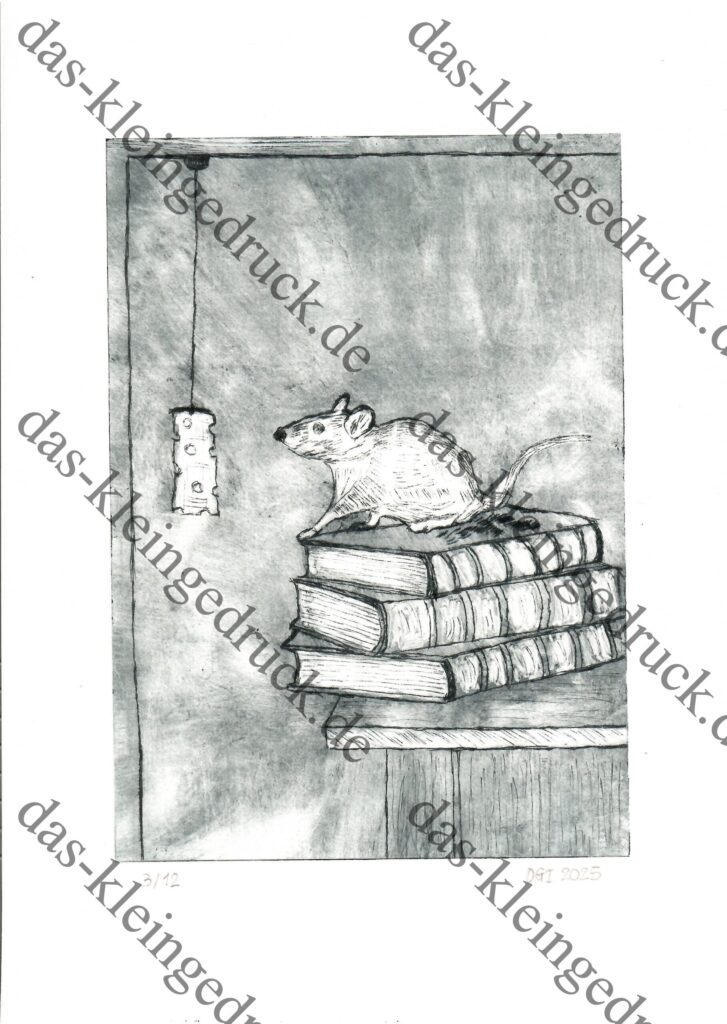 Ich habe über das Netz einen Aufruf gestartet – jeder Künstler kann in einem Handdruck-Verfahren seiner Wahl ein Motiv zum Thema „Klein“, „Maus“ oder „Mouseprint“ (= das Kleingedruckte auf Englisch) erstellen und in einer Auflag von etwa 11-15 Stück drucken. Die gesamte Auflage wird dann an mich gesandt. Dafür erhält jeder Teilnehmer im Anschluss eine Sendung mit 10 unterschiedlichen Drucken der anderen Teilnehmer zurück. Ein Austausch der die Vernetzung der Druckkünstler und die Kreativität fördert. Die restlichen Bilder werden dann in der zugehörigen Ausstellung im das-kleingedruck.de für 6 Wochen präsentiert und zum Verkauf angeboten.