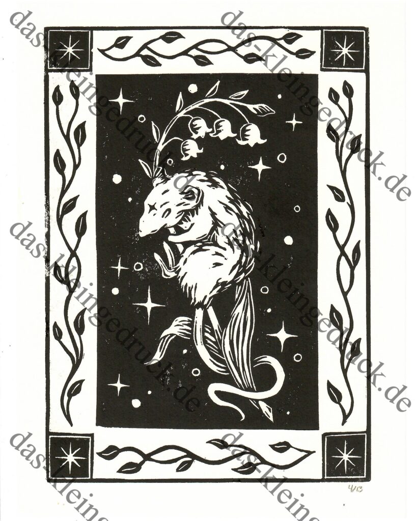 Christian Reimann stumbled over her work via social media and was impressed enough to buy a print immediately. Due to the nice contact he decided to ask if Jade could imagine to be the guest artist for the opening of his planned gallery das-kleingedruck.de (mouseprint) and was happy that she did agree to join this experiment.